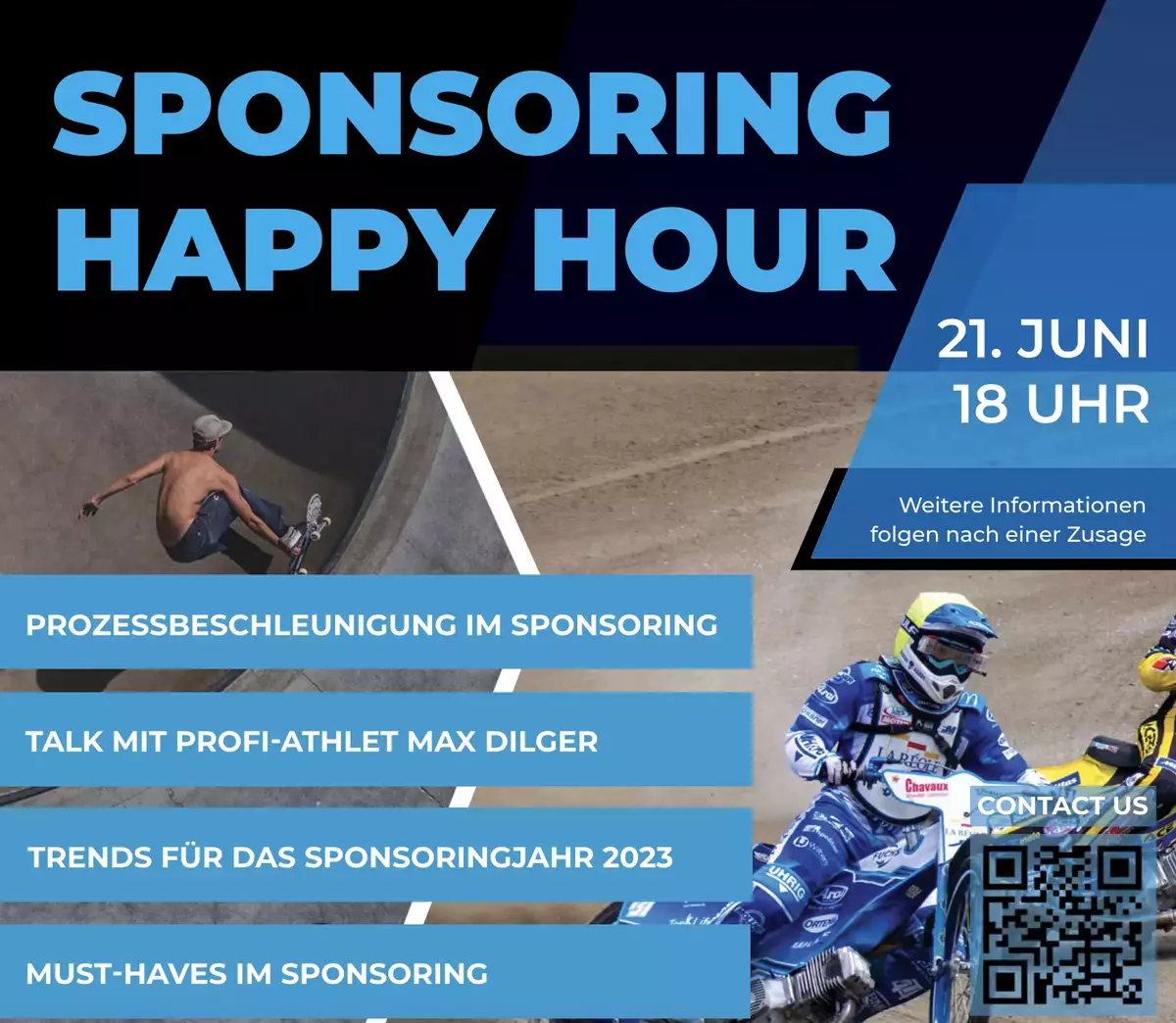 Die Sponsoring Happy Hour von become-a-pro bereitet dich auf ein perfektes Sponsoring vor - von einem Talk zur Prozessoptimierung, über die Erfahrungen der Sponsoren bis zu Trends im Sportsponsoringjahr 2023. Und auch Profi-Speedwayathlet Max Dilger wird uns seine Learnings für ein erfolgreiches Sponsoring teilen.