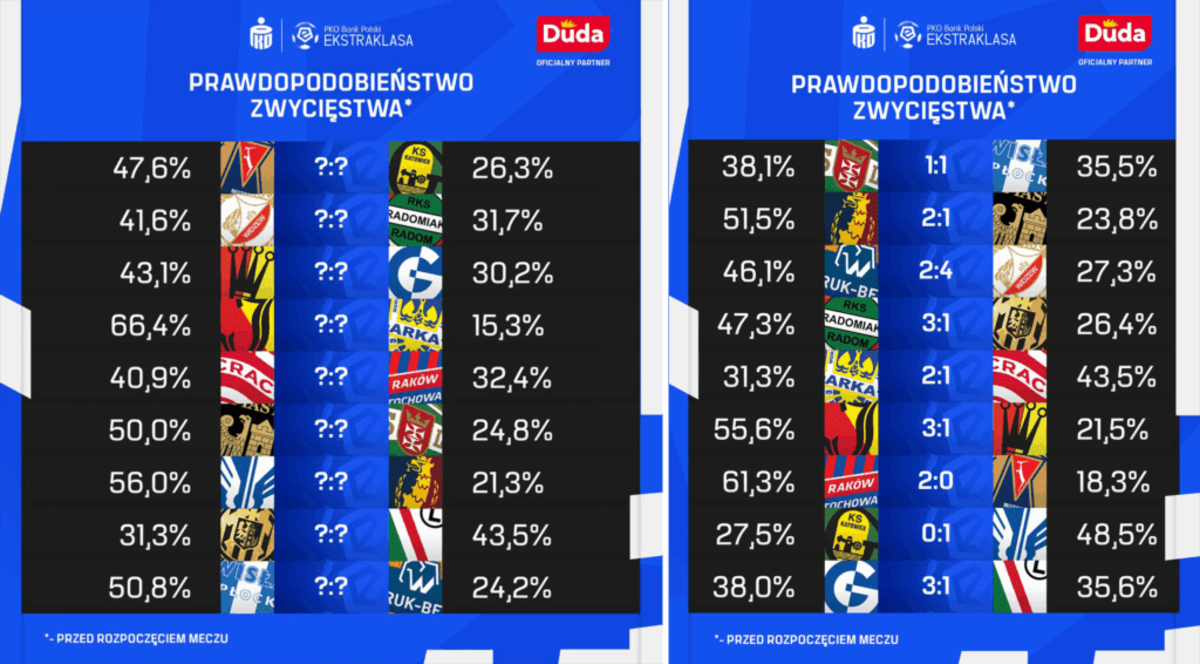 Ekstraklasa Live Park’s Serafin believes the predictions have proven a valuable asset in the league’s wider social content strategy, particularly during last season’s run in, as well as getting fans to register and engage with the league’s official app, saying: “Predictive metrics have added a new dimension to our matchday storytelling. Displaying Live Win Probability during broadcasts adds a narrative element, highlighting the dramatic shifts in a match as they happen. This approach also proved highly effective on social media: posts showing title-winning probabilities in the final rounds of the last season generated exceptional engagement. In addition, the posts have been a great fit to promote the use of the official league app, as it offers a Predictor module where fans can make their own match predictions.”