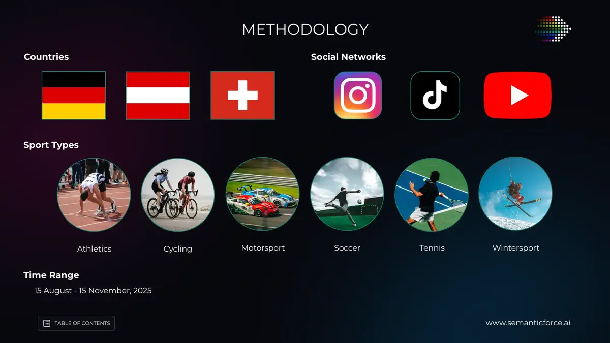 Zur Bestimmung der Sieger untersuchte SemanticForce über 3 Monate hinweg über 10.000 Posts auf TikTok, YouTube und Instagram mit mehr als 400 beworbenen Marken auf Interaktionen durch Likes, Kommentare und weitere Engagement Parameter. Durch die detaillierte sportartübergreifende Analyse avanciert der Award zum massgeblichen Jahresranking für Sport-Influencing im DACH-Raum und einen Massstab für Marken im Sport.