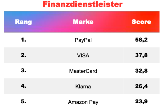 In diesem Jahr ist PayPal erstmalig Verbraucherliebling der Deutschen. Damit löst der Online-Bezahl-Dienst, der im letzten Jahr seine Premiere im „Marke des Jahres“ Rankings hatte, das dänische Spielzeugunternehmen Lego ab, das die letzten vier Jahre in Folge Spitzenreiter des Rankings war.